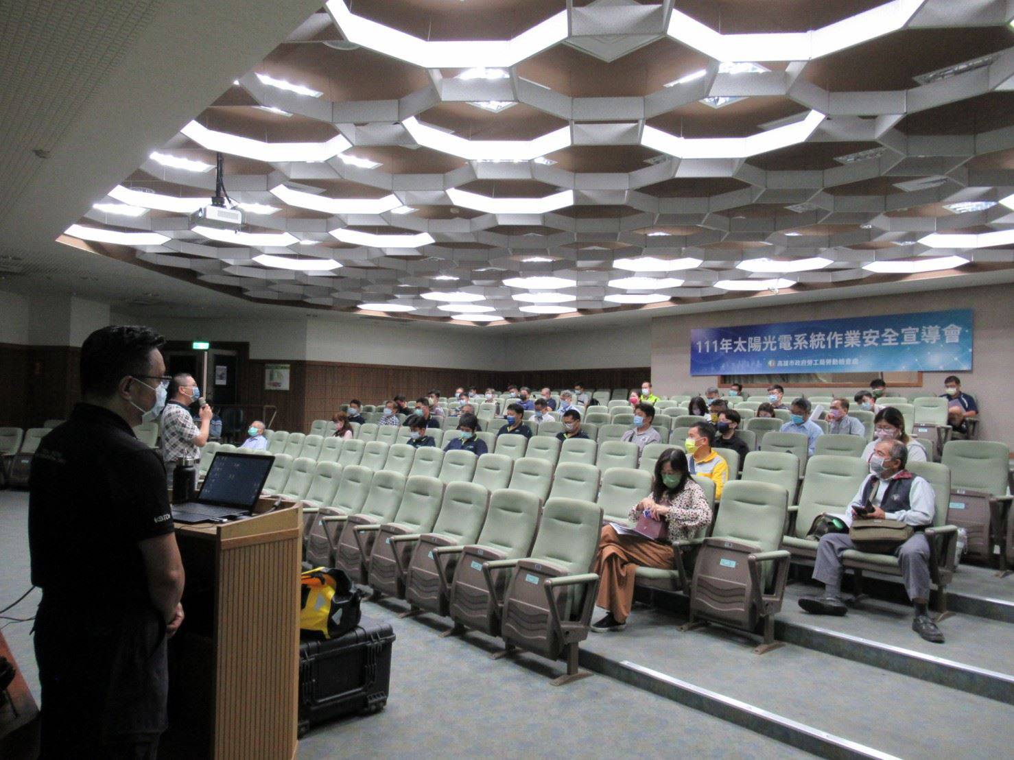 「記者:林茂松 高雄報導」 因應產業與能源轉型,太陽光電系統的架設施工作業也日益增加,尤其是屋頂型的發電系統設置,除能充分利用屋頂空間產生潔淨能源外,又能遮陽隔熱,然而從事高處架設作業時,卻潛藏許多工安危機,高雄市勞工局今年特別規劃實施校園太陽光電架設作業安全專案督檢,於1至3月共實施53場次,計裁處停工12件、罰鍰51萬元,顯示仍有不少業者便宜行事,忽略作業風險的情形,勞工局特於昨(25)日召集業者,於勞檢處簡報室舉辦安全宣導講習,共計有 53 位相關作業廠商代表參加。勞工局表示,期望透過探討屋頂作業安全、墜落防護規劃、事故案例分析及防災對策等議題,藉由知識及經驗交流,以提升業界工作安全意識。勞工局周登春局長指出,太陽光電綠能屋頂好處很多,但施工作業場所卻處處潛藏風險,包括墜落、感電、倒塌、物體飛落與戶外高溫作業熱危害等,勞檢處實施督檢時發現的缺失,以未依規定設置防墜設施最多,呼籲業者絕對不可輕忽,於施工規劃階段,包括如何安全實施架設與維運作業,應於事前進行風險評估及採取防災對策,如設計規劃屋頂永久性上下設備、護欄、安全通道、安全母索、防踏穿格柵等及編列細項安全衛生經費,並落實承攬管理、教育訓練與作業前、中、後階段的自動檢查,以確保太陽光電工作者作業安全。勞工局也將持續加強安全督檢,一旦發現違規情事,該停工就停工、該開罰就開罰,絕不寬貸,但對於願意改善安全設施的業者,勞工局也會提供輔導,協助雇主完善作業環境。