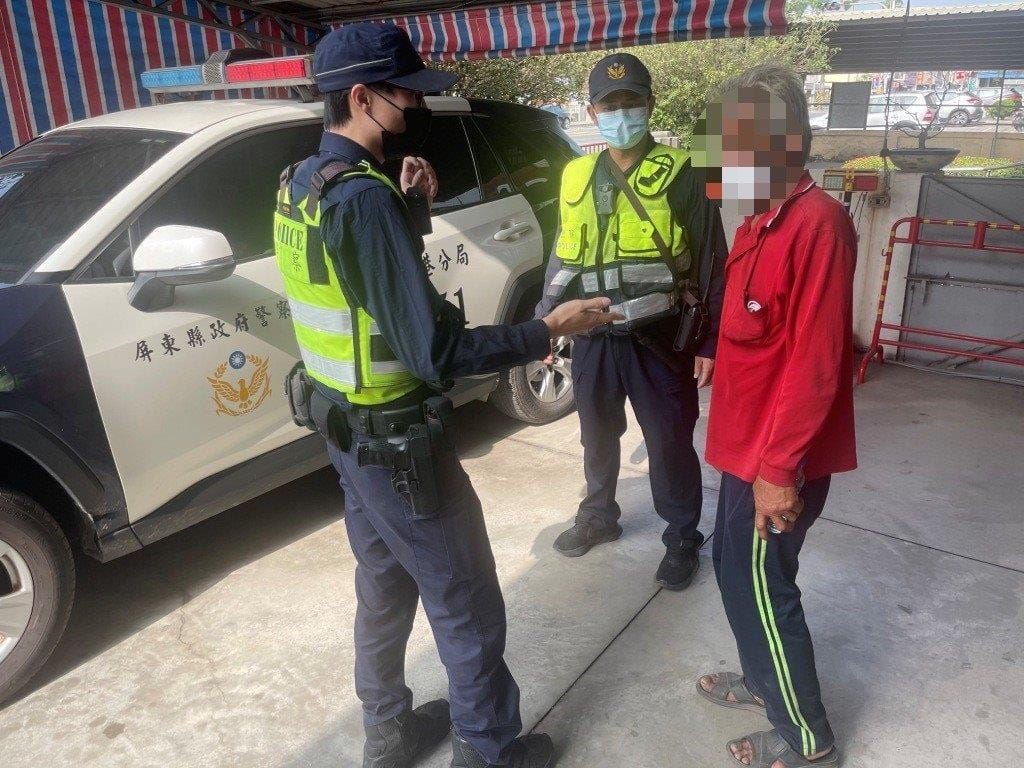 警方表示,老翁騎著電動自行車外出買晚餐,因雙腳無力而不慎摔倒,員警獲報到場後發現老翁因摔倒身上有多處擦傷,立即通知救護車,等待時先向民眾借用椅子供其坐著休息,老翁因摔倒受到驚嚇,對於警方詢問無法正確回答,僅知住在南州鄉七塊村,經警聯繫七塊村長到場協助辨識老人身分,村長到場後隨即認出該老人為蔡民(81歲),員警隨即通知家屬前往安泰醫院,家屬表示因白天要出門工作,只有父親一人在家,對於警方熱心協助表示感謝。