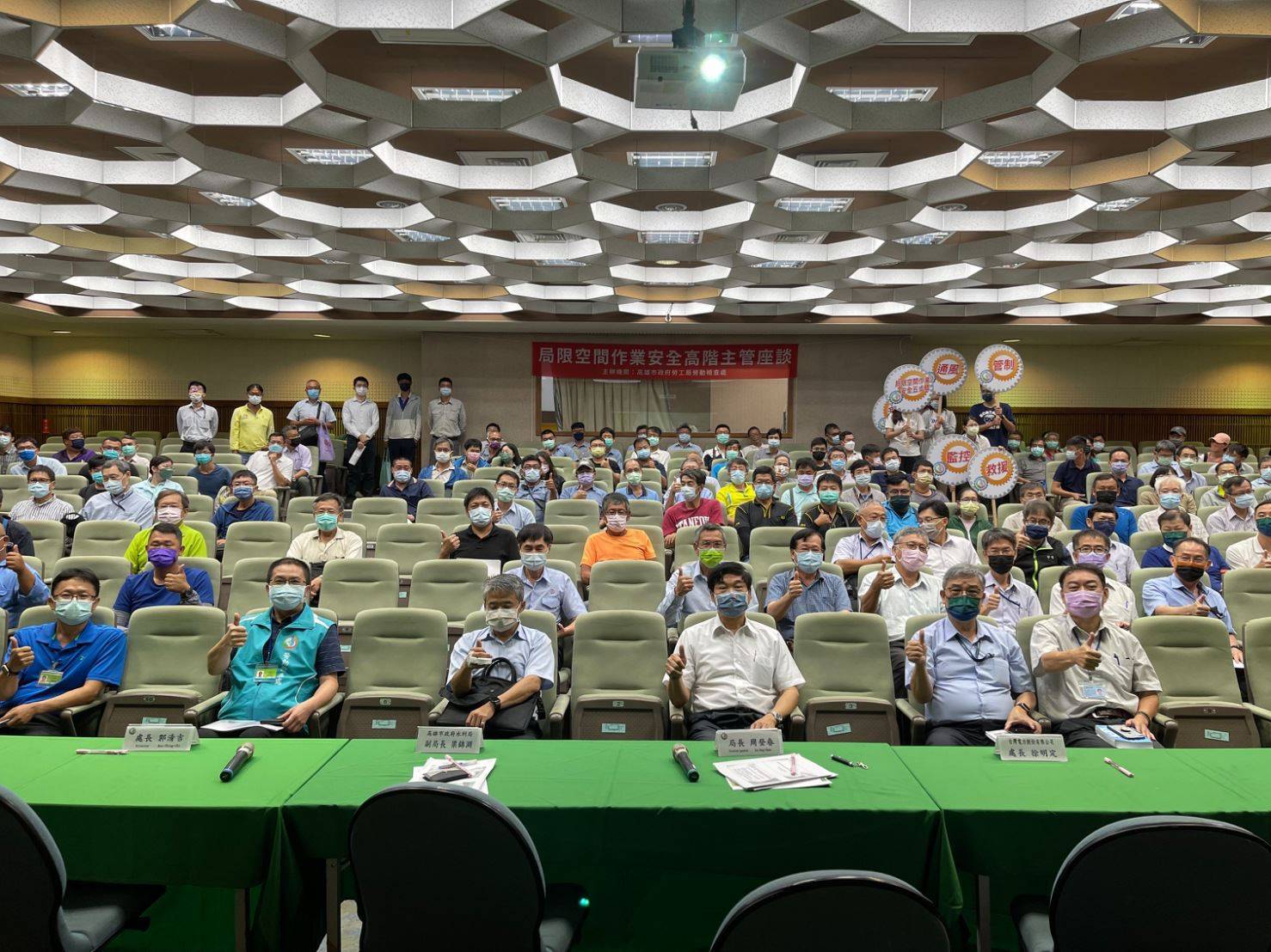 『記者:林茂松 高屏報導』 高雄市政府勞工局(7)日邀請水利局、捷運工程局、環保局、台電公司,並召集下水道處理、推進工程、有線電視、管道修護等相關作業計65家廠商,在勞檢處共同針對下水道工作安全研商對策,座談會首先進行勞工傷亡事故案例解說分析,再針對空間廣大或有大量危害物突入的局限空間作業,如何確保有效通風換氣及連續氣體測定,與對於深度2公尺以上的人孔進出所應置備的安全與救援裝置,及相關危害防止等事項進行研討。研討會議由勞工局周登春局長、水利局梁錦淵副局長、台電公司徐明定處長,及勞檢處郭清吉處長共同主持,經與會廠商負責人及高階主管代表充分交換意見及研議後,對未來下水道工作安全提出以下重點對策:一、施工廠商應詳實於勞工局研發之「局限空間作業管理系統」進行作業通報,並應即時回傳安全檢點與管制情形;勞工局可開放查詢權限供相關監督單位運用,以利依合約嚴懲未依實辦理之作業廠商。二、深度2公尺以上之局限空間作業,應確實使用全身背負式安全帶及捲揚式防墜器,並備妥相關呼吸防護具與緊急救援設施。三、勞工局將持續協助各施工廠商辦理安全衛生教育訓練,以提升作業人員安全識能。